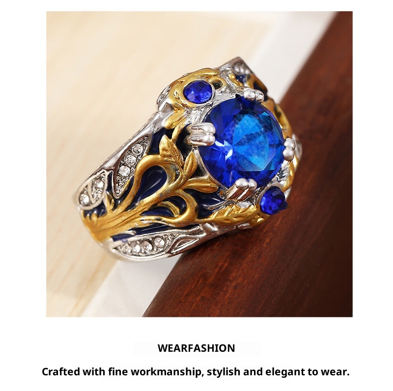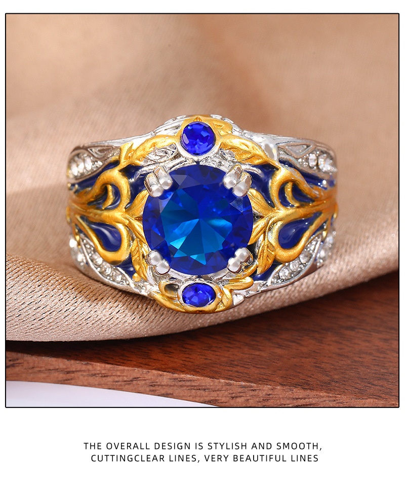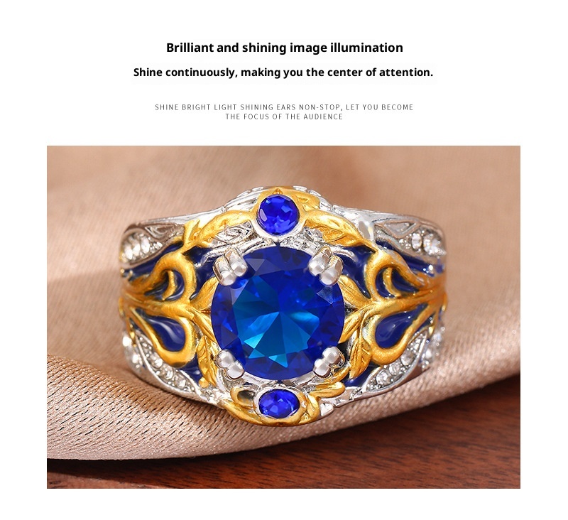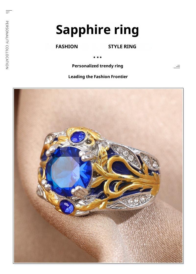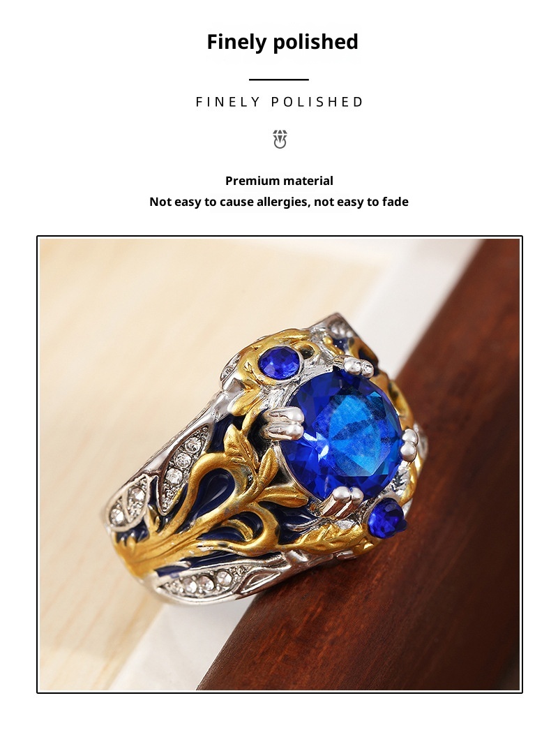 Vintage Inlaid Sapphire Ring Creative Electroplated Ring