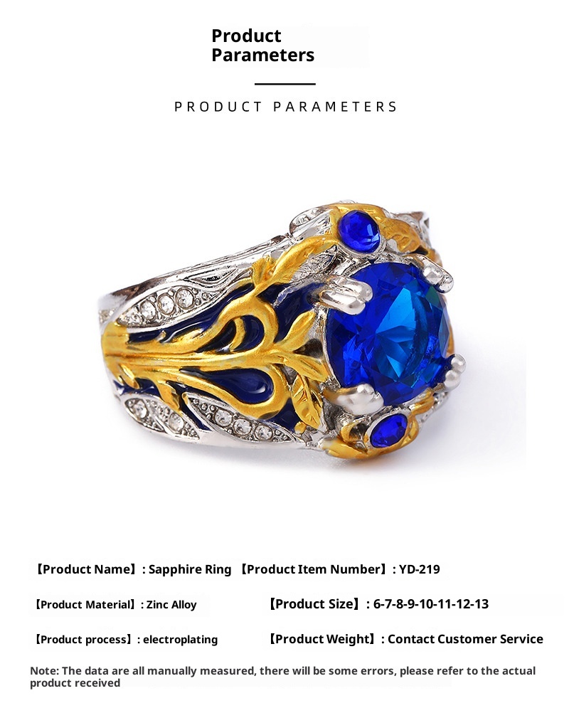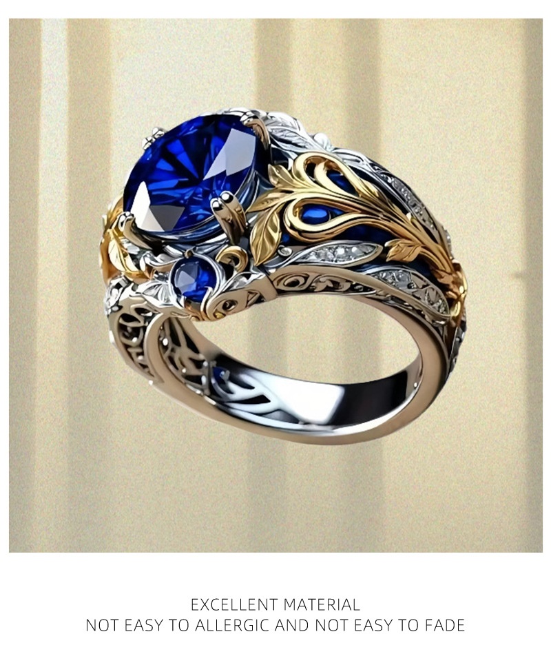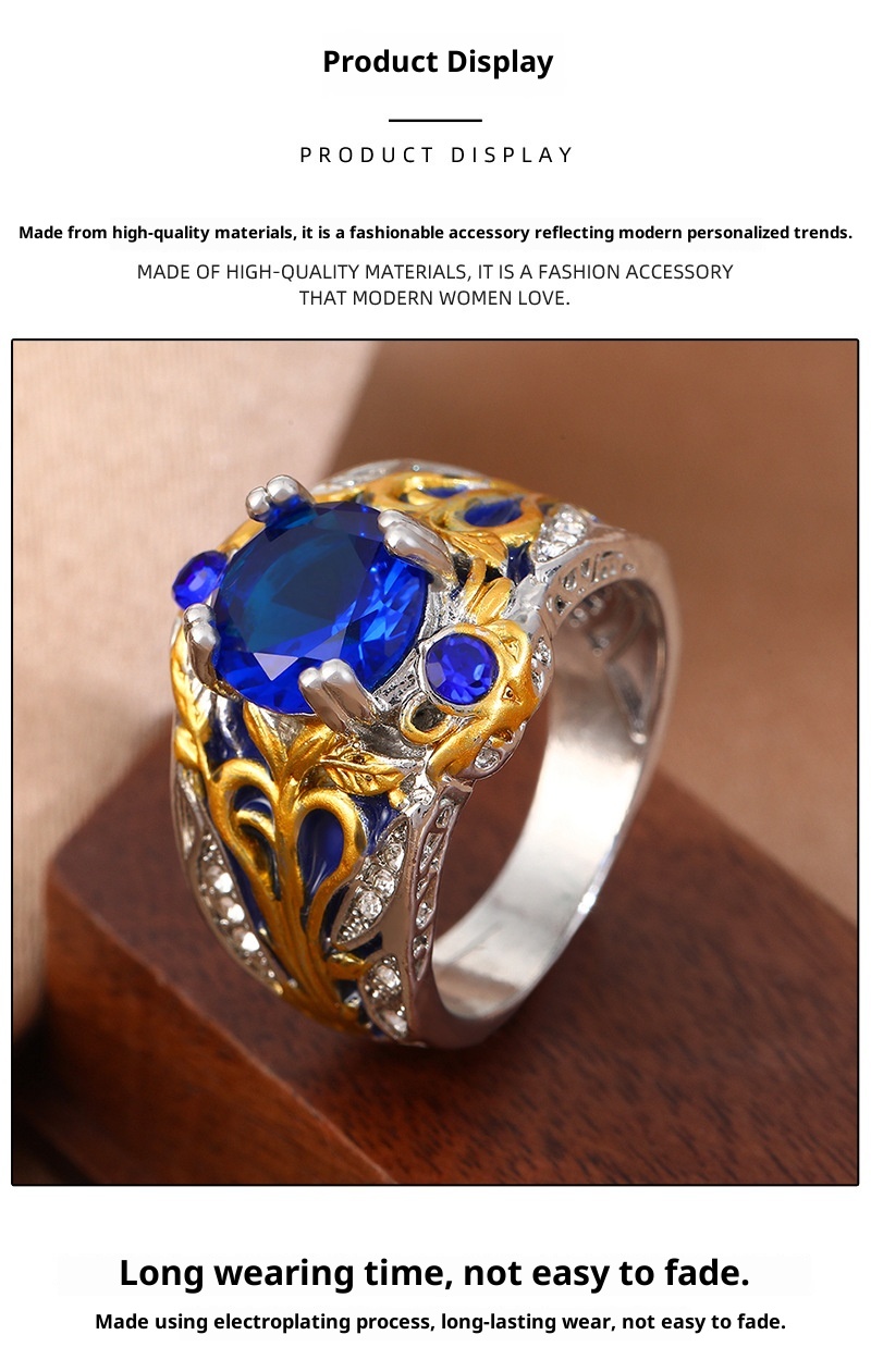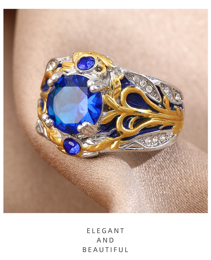 Vintage Inlaid Sapphire Ring Creative Electroplated Ring