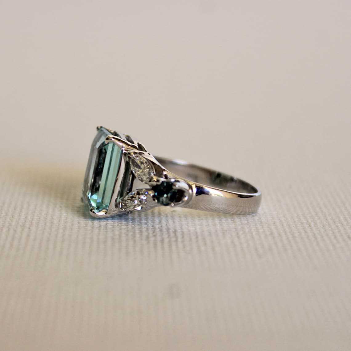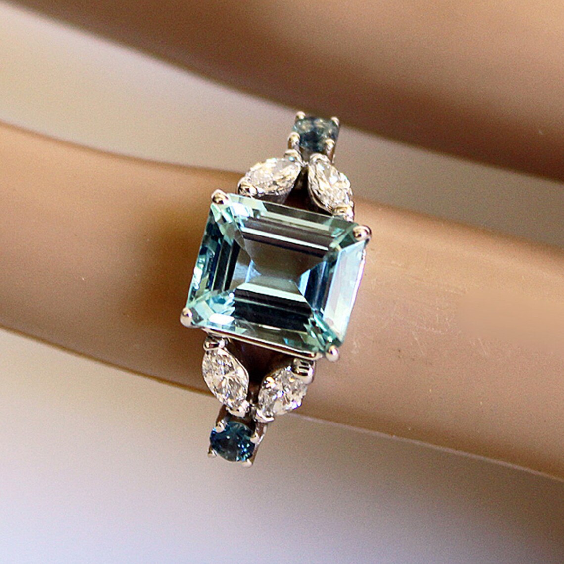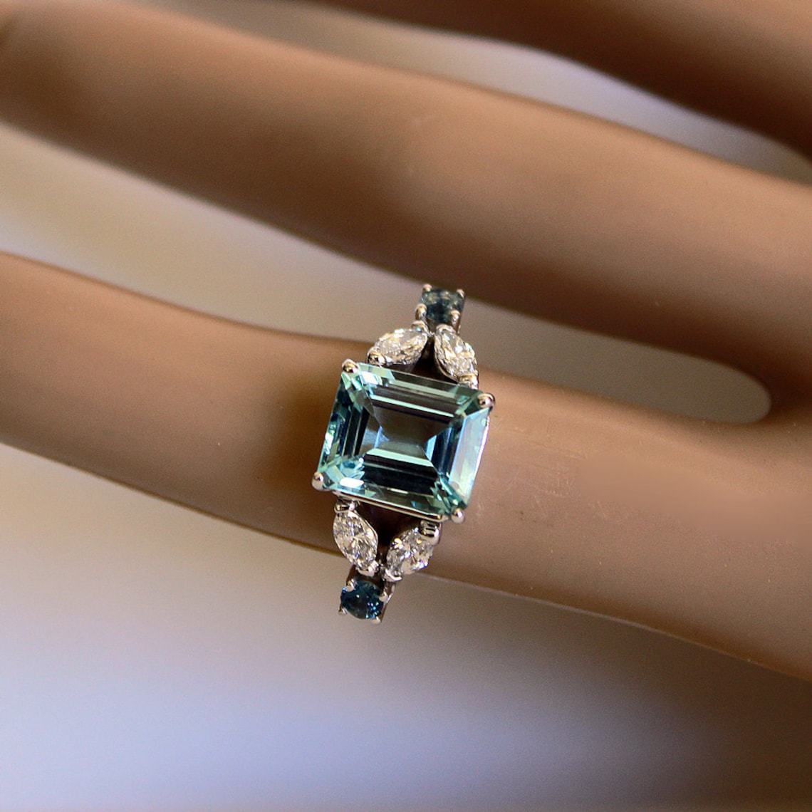 Water Blue Cutting Square Simple Exquisite Women's Ring