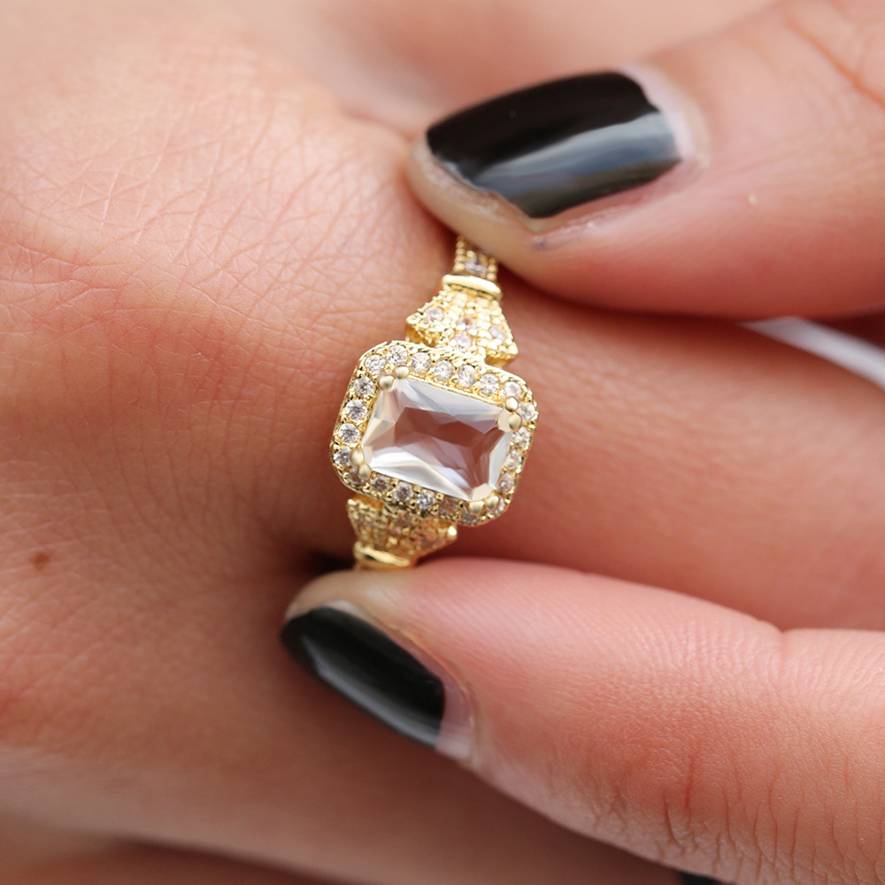Women's Simple And Fashionable Square Zirconia Micro-set Ring